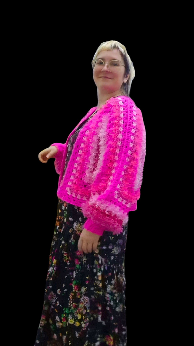 Hexi Cardigan, Fluoro Pink. Uniikki!