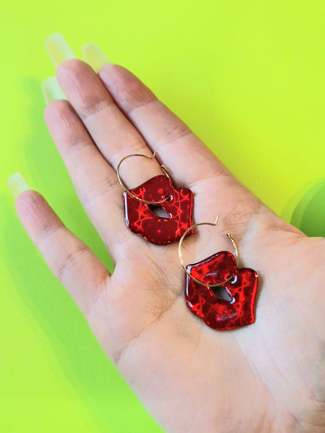 Holografinen punainen pusuhuulikorvakoru niille, jotka eivät kaipaa joulurauhaa vaan jouludraamaa.